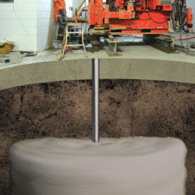 Móng vữa xi măng là một giải pháp xử lý gia cố nền đất yếu hiệu quả và phổ biến cho các công trình cơ sở hạ tầng mới. Tuỳ nhiên việc ứng dụng giải pháp móng vữa trong việc chống lún cho công trình đã hoàn thiện là một thách thức lớn vì thiết bị quá lớn.